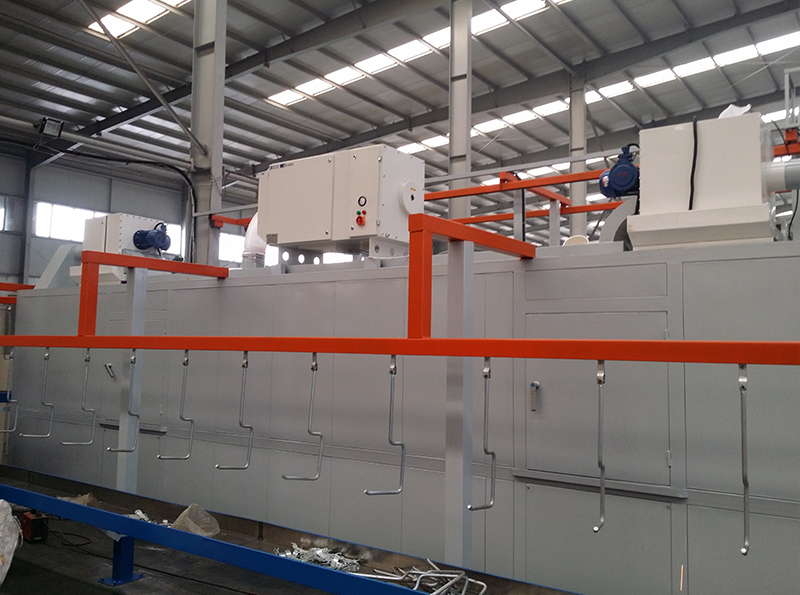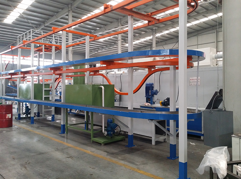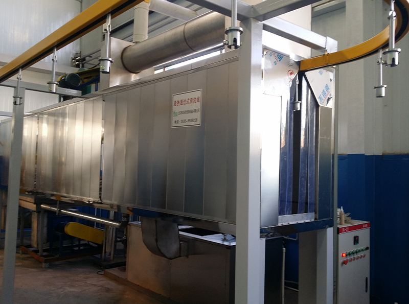 采用噴淋清洗配合液下射流清晰地新型工藝,由于清洗在液下完成,減少煤油在空氣中的霧化,既節(jié)省了生產(chǎn)成本,又提高了產(chǎn)品質(zhì)量。配合懸掛式輸送機經(jīng)浸防銹油、瀝油、吹干等工藝完成清洗過程。